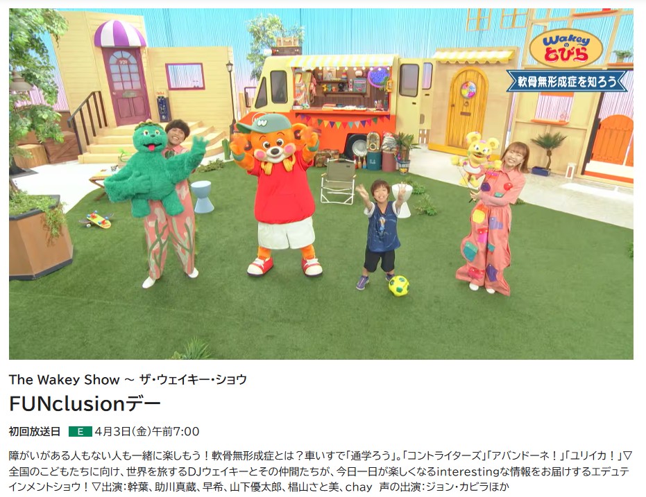 2025年12月3日、障害者が人間らしい生活を送る権利を保障し、社会参加を促進するための重要な日である国際障害者デーにおいて放映されたNHK E テレ The Wakey Show「Wakeyのとびら」(軟骨無形成症とは?)が2026年4月3日に再放送されます。
